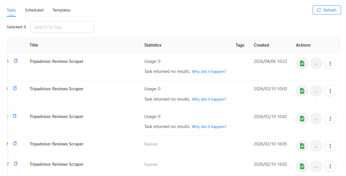 About a week ago, Tripadvisor Reviews Scraper stop working again, with the Task returned no results. I’ve tried restarting the scraper every few days, but the problem persists.